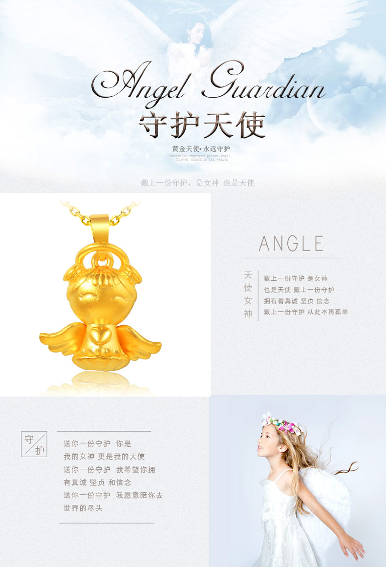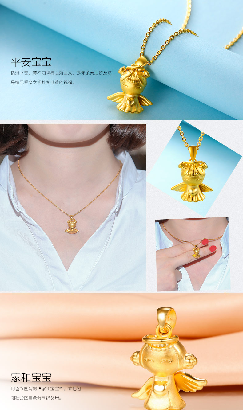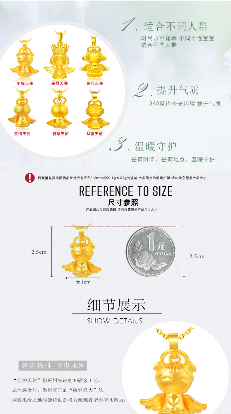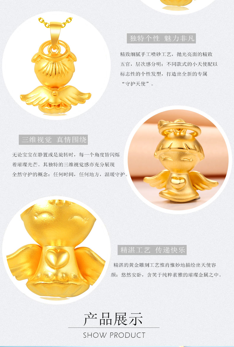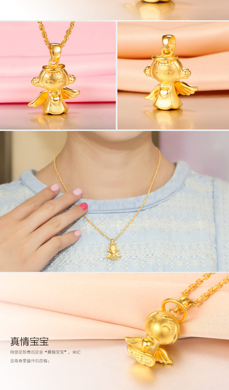 3D硬足金999男女款天使福星宝宝黄金吊坠